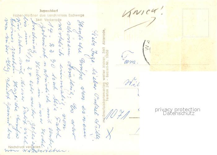 73742488 alte Postkarte Vockerode Eschwege Jugenddorf Hoher Meissner des Landkreises Eschwege postalisch gelaufen Erhaltung siehe scans [WerneD78] KatCode: 11110006636008