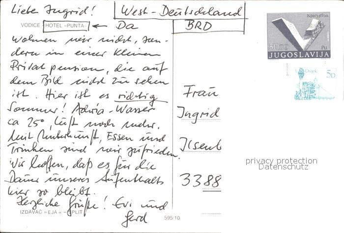 old postcard Vodice Hotel Punta postalisch gelaufen Erhaltung siehe scans