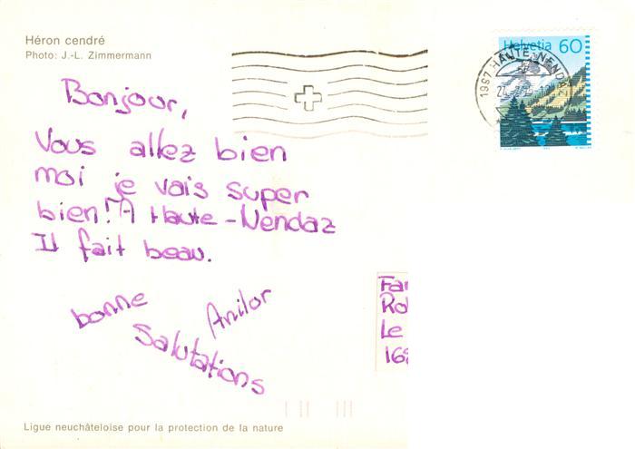 alte Postkarte Voegel Birds Oiseaux Reiher Heron cendre postalisch gelaufen Erhaltung siehe scans [SanaeD93]