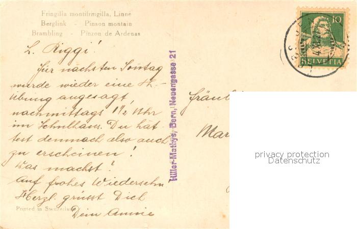 73742071 Voegel Birds Oiseaux Uccelli Pajaros– Berglink-Pinson montain postalisch gelaufen Erhaltung siehe scans [IrynaD87] alte Postkarte Iryn Katcode 22540000003500