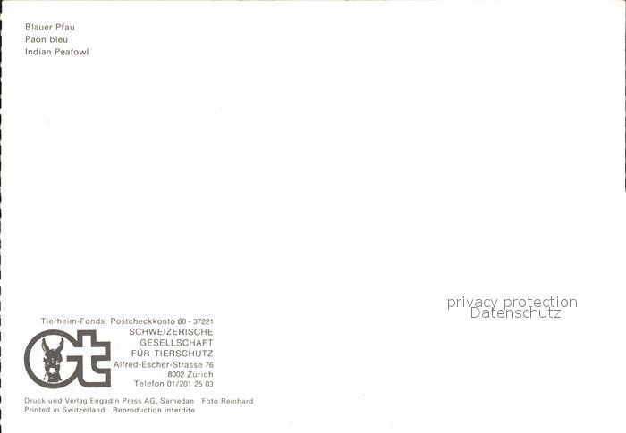 72544241 Voegel Birds Oiseaux Uccelli Pajaros– Blauer Pfau Paon bleu Indian Peafowl postalisch nicht gelaufen Erhaltung siehe scans [PaolaD17 kt115box] Paol Katcode 22540000003500