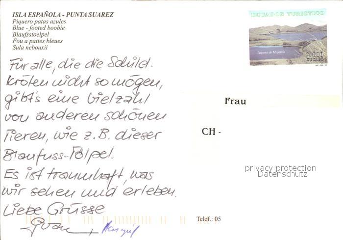 72554505 Voegel Birds Oiseaux Uccelli Pajaros– Blaufusstoelpel Piquero Patas Azules Isla Espanola Ecuador postalisch nicht gelaufen Erhaltung siehe scans [PaolaD17] Paol Katcode 22540000003500