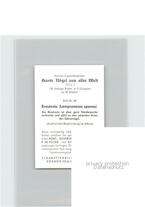 72144483 Voegel Birds Oiseaux Uccelli Pajaros– Brautente Kosmos-Zigarettenbilder Bild Nr. 50 postalisch nicht gelaufen Keine Postkarte (siehe scan) Erhaltung siehe scans Keine Postkarte (siehe scan) Paol Katcode 22540000003500