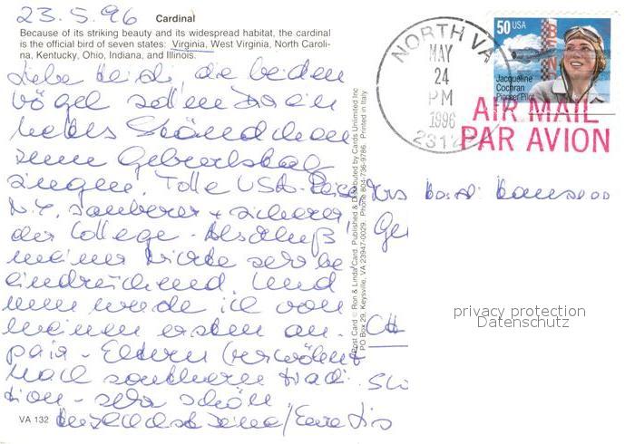 73166298 Voegel Birds Oiseaux Uccelli Pajaros– Cardinal postalisch gelaufen Erhaltung siehe scans [PaolaD17] alte Postkarte Paol Katcode 22540000003500