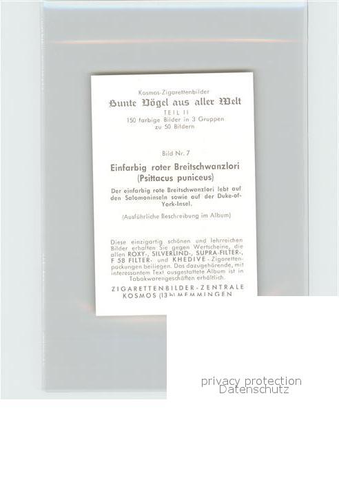 72145097 Voegel Birds Oiseaux Uccelli Pajaros– Einfarbig roter Breitschwanzlori Kosmos-Zigarettenbilder Bild Nr. 7 postalisch nicht gelaufen Keine Postkarte (siehe scan) Erhaltung siehe scans Keine Postkarte (siehe scan) Paol Katcode 22540000003500