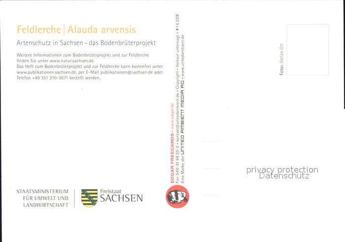 72505118 Voegel Birds Oiseaux Uccelli Pajaros– Feldlerche Artenschutz Sachsen Bodenbrueterprojekt postalisch nicht gelaufen Erhaltung siehe scans Paol Katcode 22540000003500