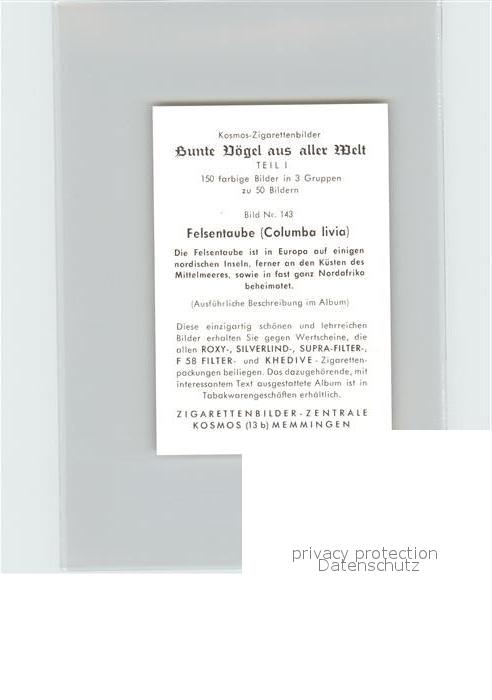 72145116 Voegel Birds Oiseaux Uccelli Pajaros– Felsentaube Kosmos-Zigarettenbilder Bild Nr. 143 postalisch nicht gelaufen Keine Postkarte (siehe scan) Erhaltung siehe scans Keine Postkarte (siehe scan) Paol Katcode 22540000003500