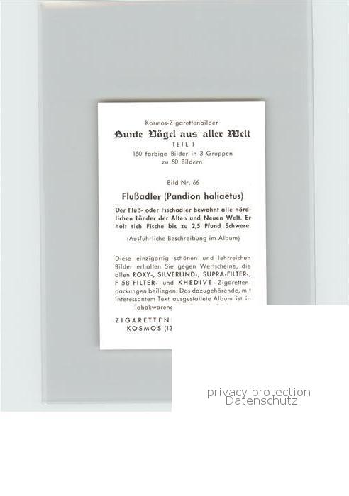72143568 Voegel Birds Oiseaux Uccelli Pajaros– Flussadler Kosmos-Zigarettenbilder Bild Nr. 66 postalisch nicht gelaufen Keine Postkarte (siehe scan) Erhaltung siehe scans Keine Postkarte (siehe scan) Paol Katcode 22540000003500