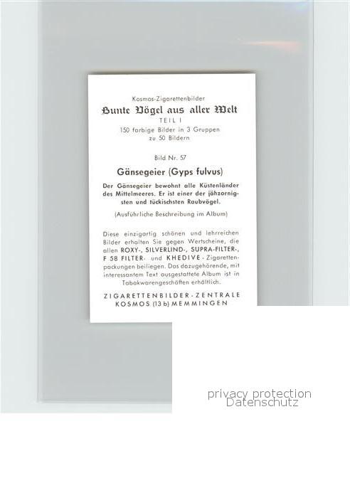 72143586 Voegel Birds Oiseaux Uccelli Pajaros– Gaensegeier Kosmos-Zigarettenbilder Bild Nr. 57 postalisch nicht gelaufen Keine Postkarte (siehe scan) Erhaltung siehe scans Keine Postkarte (siehe scan) Paol Katcode 22540000003500