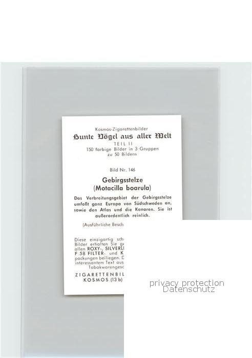 72144517 Voegel Birds Oiseaux Uccelli Pajaros– Gebirgsstelze Kosmos-Zigarettenbilder Bild Nr. 146 postalisch nicht gelaufen Keine Postkarte (siehe scan) Erhaltung siehe scans Keine Postkarte (siehe scan) Paol Katcode 22540000003500