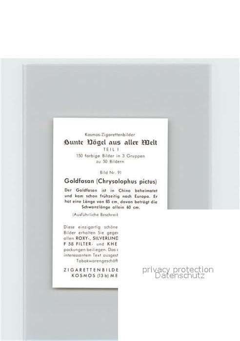 72144479 Voegel Birds Oiseaux Uccelli Pajaros– Goldfasan Kosmos-Zigarettenbilder Bild Nr. 91 postalisch nicht gelaufen Keine Postkarte (siehe scan) Erhaltung siehe scans Keine Postkarte (siehe scan) Paol Katcode 22540000003500