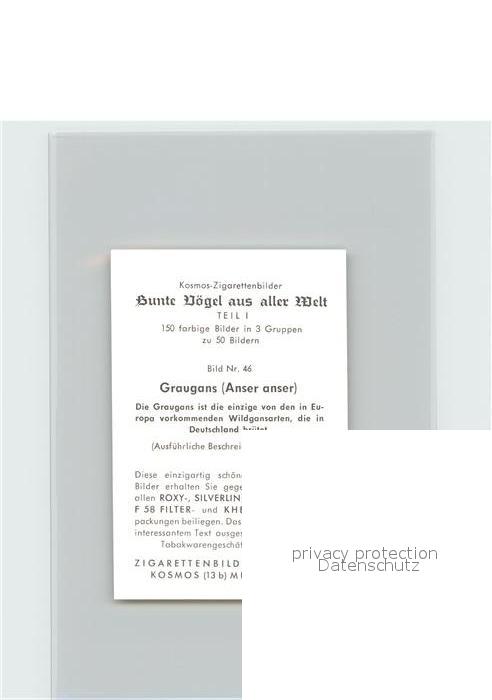 72144499 Voegel Birds Oiseaux Uccelli Pajaros– Graugans Kosmos-Zigarettenbilder Bild Nr. 46 postalisch nicht gelaufen Keine Postkarte (siehe scan) Erhaltung siehe scans Keine Postkarte (siehe scan) Paol Katcode 22540000003500