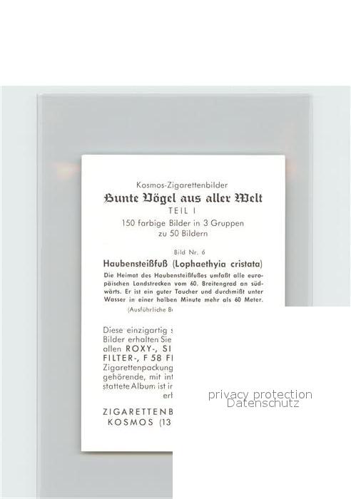72144508 Voegel Birds Oiseaux Uccelli Pajaros– Haubensteissfuss Kosmos-Zigarettenbilder Bild Nr. 6 postalisch nicht gelaufen Keine Postkarte (siehe scan) Erhaltung siehe scans Keine Postkarte (siehe scan) Paol Katcode 22540000003500