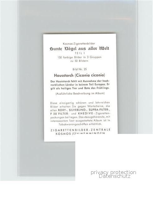 72143591 Voegel Birds Oiseaux Uccelli Pajaros– Hausstorch Kosmos-Zigarettenbilder Bild Nr. 25 postalisch nicht gelaufen Keine Postkarte (siehe scan) Paol Katcode 22540000003500