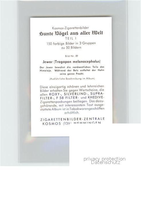 72145138 Voegel Birds Oiseaux Uccelli Pajaros– Jewar Kosmos-Zigarettenbilder Bild Nr. 89 postalisch nicht gelaufen Keine Postkarte (siehe scan) Erhaltung siehe scans Keine Postkarte (siehe scan) Paol Katcode 22540000003500