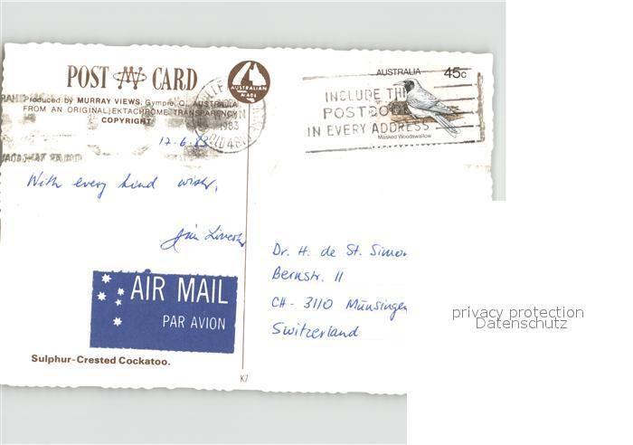 71568280 Voegel Birds Oiseaux Uccelli Pajaros– Kakadu Luftpost postalisch gelaufen Erhaltung siehe scans Alte Ansichtskarte Postkarte alte Postkarte Oliv Katcode 22540000003500