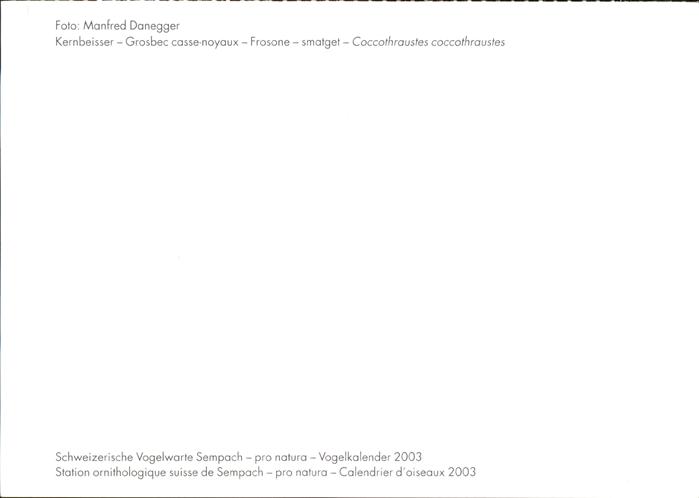 71459424 Voegel Birds Oiseaux Uccelli Pajaros– Kernbeisser Frosone smatget Vogelkalender postalisch nicht gelaufen Erhaltung siehe scans Alte Ansichtskarte Postkarte Paol Katcode 22540000003500