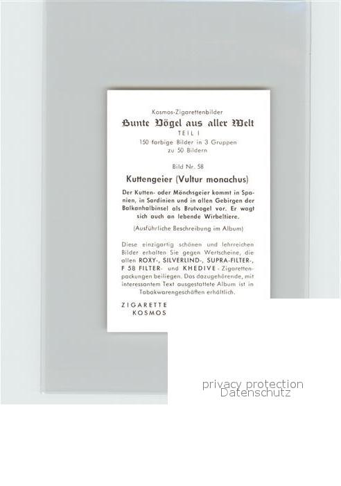 72143576 Voegel Birds Oiseaux Uccelli Pajaros– Kuttengeier Kosmos-Zigarettenbilder Bild Nr. 58 postalisch nicht gelaufen Keine Postkarte (siehe scan) Erhaltung siehe scans Keine Postkarte (siehe scan) Paol Katcode 22540000003500