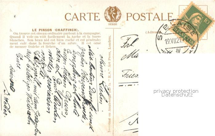 73741660 Voegel Birds Oiseaux Uccelli Pajaros– Le Pinson Chaffinch postalisch gelaufen Erhaltung siehe scans [IrynaD87] alte Postkarte Iryn Katcode 22540000003500
