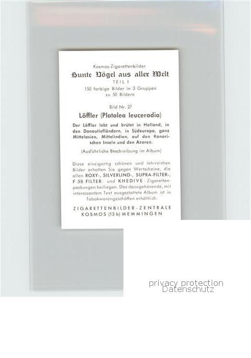 72143595 Voegel Birds Oiseaux Uccelli Pajaros– Loeffler Kosmos-Zigarettenbilder Bild Nr. 27 postalisch nicht gelaufen Keine Postkarte (siehe scan) Erhaltung siehe scans Keine Postkarte (siehe scan) Paol Katcode 22540000003500
