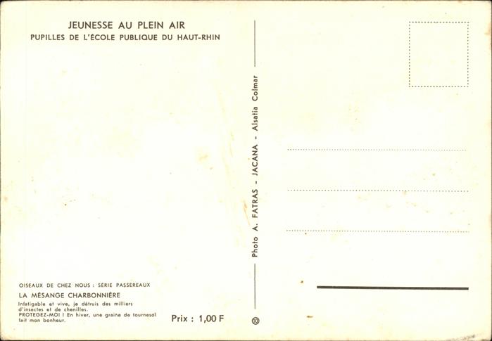 71458764 Voegel Birds Oiseaux Uccelli Pajaros– Mesange Charbonniere Haut-Rhin Jeunesse au Plein Air postalisch nicht gelaufen Erhaltung siehe scans Alte Ansichtskarte Postkarte Paol Katcode 22540000003500