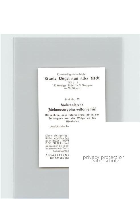 72144559 Voegel Birds Oiseaux Uccelli Pajaros– Mohrenlerche Kosmos-Zigarettenbilder Bild Nr. 150 postalisch nicht gelaufen Keine Postkarte (siehe scan) Paol Katcode 22540000003500