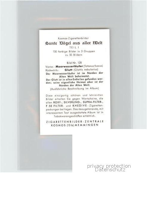 72145119 Voegel Birds Oiseaux Uccelli Pajaros– Moorwasserlaeufer Glutt Kosmos-Zigarettenbilder Bild Nr. 120 postalisch nicht gelaufen Keine Postkarte (siehe scan) Erhaltung siehe scans Keine Postkarte (siehe scan) Paol Katcode 22540000003500