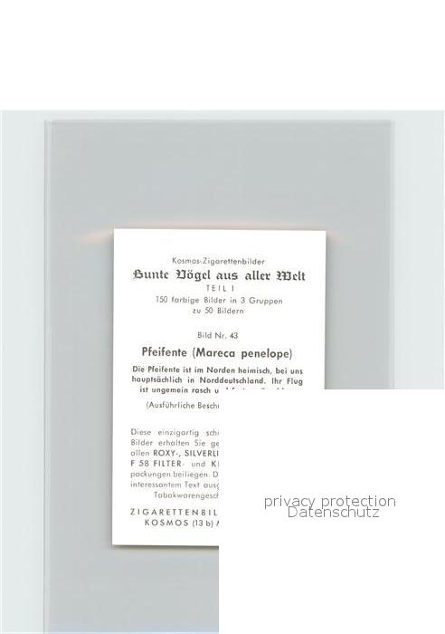 72144496 Voegel Birds Oiseaux Uccelli Pajaros– Pfeifente Kosmos-Zigarettenbilder Bild Nr. 43 postalisch nicht gelaufen Keine Postkarte (siehe scan) Erhaltung siehe scans Keine Postkarte (siehe scan) Paol Katcode 22540000003500