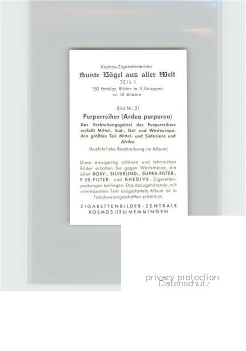 72143590 Voegel Birds Oiseaux Uccelli Pajaros– Purpurreiher Kosmos-Zigarettenbilder Bild Nr. 21 postalisch nicht gelaufen Keine Postkarte (siehe scan) Erhaltung siehe scans Keine Postkarte (siehe scan) Paol Katcode 22540000003500
