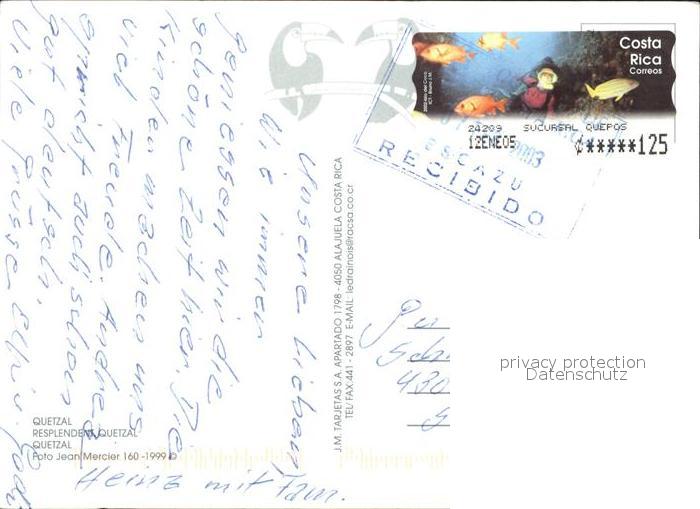 72609383 Voegel Birds Oiseaux Uccelli Pajaros– Quetzal Costa Rica postalisch gelaufen Erhaltung siehe scans [PaolaD17] alte Postkarte Paol Katcode 22540000003500