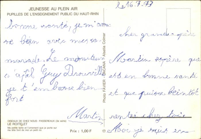 71458796 Voegel Birds Oiseaux Uccelli Pajaros– Roitelet Haut-Rhin Jeunesse au Plein Air postalisch nicht gelaufen Erhaltung siehe scans Alte Ansichtskarte Postkarte Paol Katcode 22540000003500