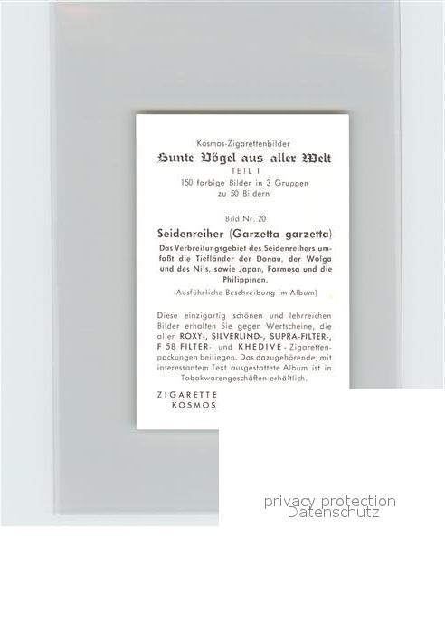 72143589 Voegel Birds Oiseaux Uccelli Pajaros– Seidenreiher Kosmos-Zigarettenbilder Bild Nr. 20 postalisch nicht gelaufen Keine Postkarte (siehe scan) Erhaltung siehe scans Keine Postkarte (siehe scan) Paol Katcode 22540000003500