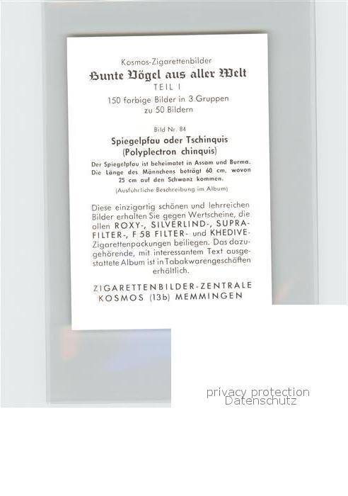 72145135 Voegel Birds Oiseaux Uccelli Pajaros– Spiegelpfau oder Tschinquis Kosmos-Zigarettenbilder Bild Nr. 84 postalisch nicht gelaufen Keine Postkarte (siehe scan) Erhaltung siehe scans Keine Postkarte (siehe scan) Paol Katcode 22540000003500