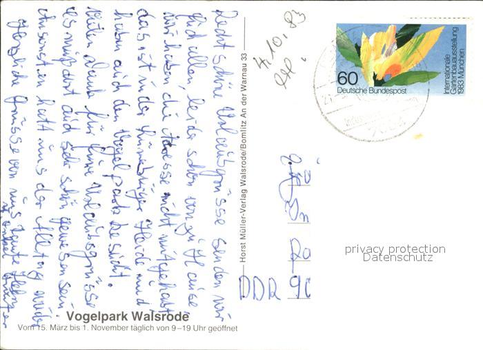 72505093 Voegel Birds Oiseaux Uccelli Pajaros– Vogelpark Walsrode postalisch gelaufen Erhaltung siehe scans alte Postkarte Paol Katcode 22540000003500