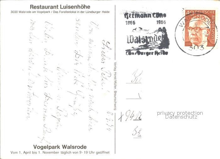 72505117 Voegel Birds Oiseaux Uccelli Pajaros– Vogelpark Walsrode postalisch gelaufen Erhaltung siehe scans alte Postkarte Paol Katcode 22540000003500