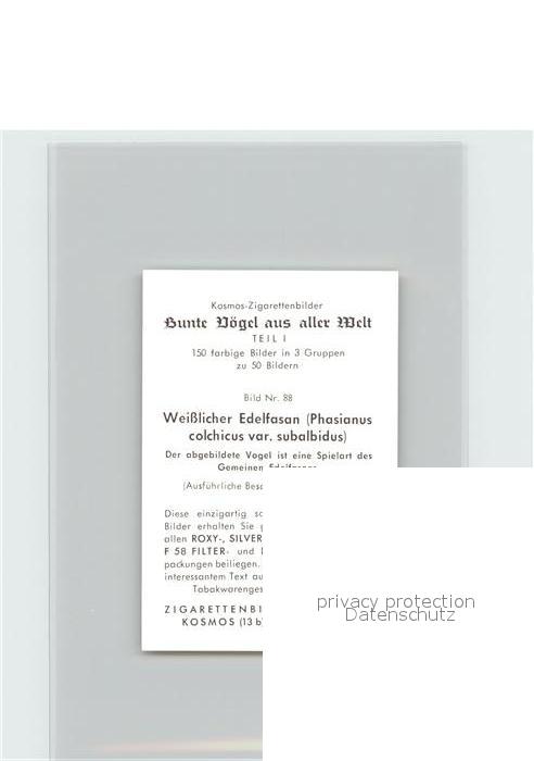 72144476 Voegel Birds Oiseaux Uccelli Pajaros– Weisslicher Edelfasan Kosmos-Zigarettenbilder Bild Nr. 88 postalisch nicht gelaufen Keine Postkarte (siehe scan) Erhaltung siehe scans Keine Postkarte (siehe scan) Paol Katcode 22540000003500