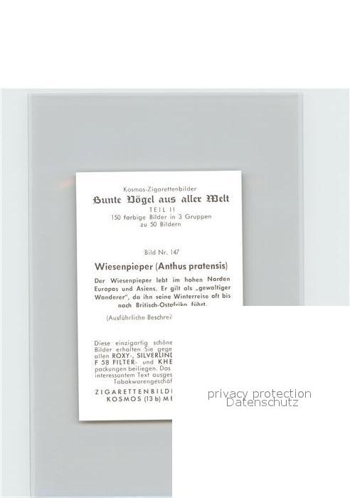 72144516 Voegel Birds Oiseaux Uccelli Pajaros– Wiesenpieper Kosmos-Zigarettenbilder Bild Nr. 147 postalisch nicht gelaufen Keine Postkarte (siehe scan) Erhaltung siehe scans Keine Postkarte (siehe scan) Paol Katcode 22540000003500