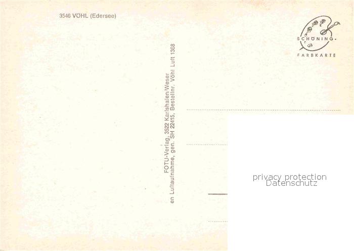 32838973 Voehl Edersee Fliegeraufnahme postalisch nicht gelaufen Erhaltung siehe scans [KathaD81] KatCode: 11110006635019