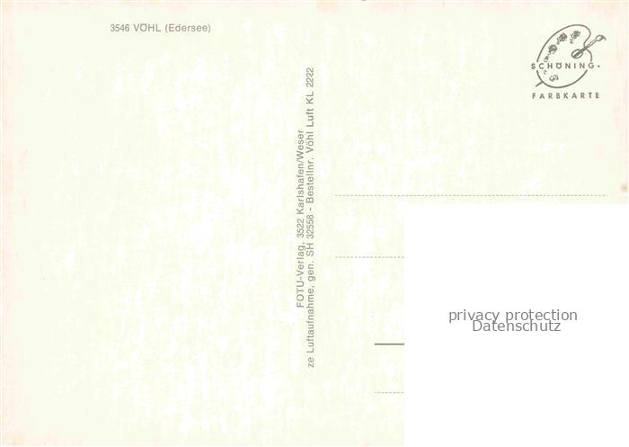 74023799 Voehl Edersee Waldeck-Frankenberg Hessen Fliegeraufnahme postalisch nicht gelaufen Erhaltung siehe scans [FriedD77] KatCode: 11110006635019