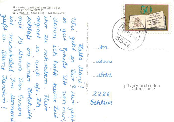74141985 alte Postkarte Voehl Edersee Waldeck-Frankenberg Hessen Schullandheim Zeltlager Albert Schweizer postalisch gelaufen Erhaltung siehe scans [SanaeD93] KatCode: 11110006635019