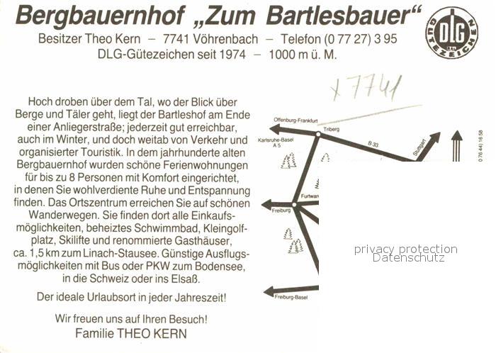 72654594 Voehrenbach Bergbauernhof Zum Bartlesbauer Linach Stausee Sperrmauer postalisch nicht gelaufen Werbekarte (keine Postkarte) Erhaltung siehe scans [FriedD77] KatCode: 11110008326068