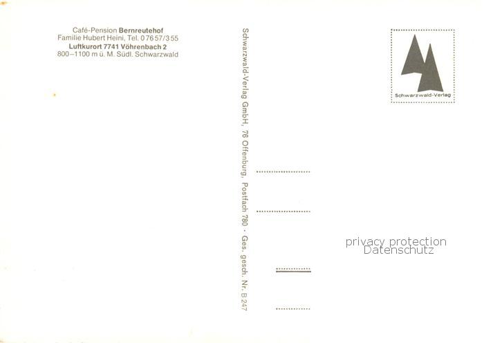 73846168 Voehrenbach Cafe Pension Bernreutehof postalisch nicht gelaufen Erhaltung siehe scans [WerneD78] KatCode: 11110008326068