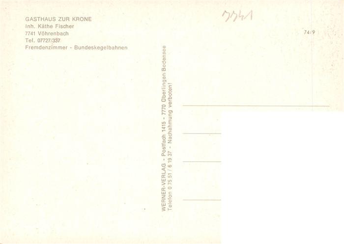 73941589 Voehrenbach Gasthaus Krone Gastraeume postalisch nicht gelaufen Erhaltung siehe scans [WerneD78] KatCode: 11110008326068