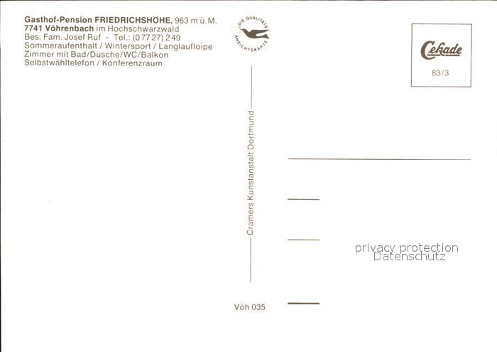 71845662 Voehrenbach Gasthaus Pension Friedrichshoehe postalisch nicht gelaufen Erhaltung siehe scans KatCode: 11110008326068