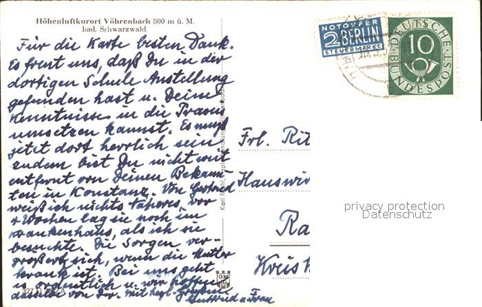 31841490 alte Postkarte Voehrenbach Gasthaus zum Engel postalisch gelaufen Erhaltung siehe scans KatCode: 11110008326068