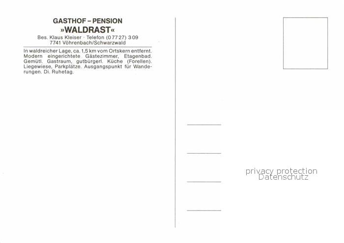 72677699 Voehrenbach Gasthof Pension Waldrast im Schwarzwald postalisch nicht gelaufen Erhaltung siehe scans [FriedD77] KatCode: 11110008326068
