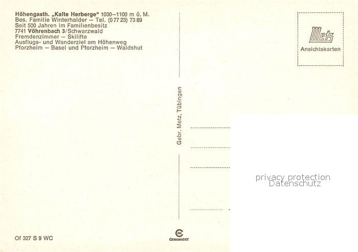 73176174 Voehrenbach Gaststaette Kalte Herberge postalisch nicht gelaufen Erhaltung siehe scans [NatalD47] KatCode: 11110008326068