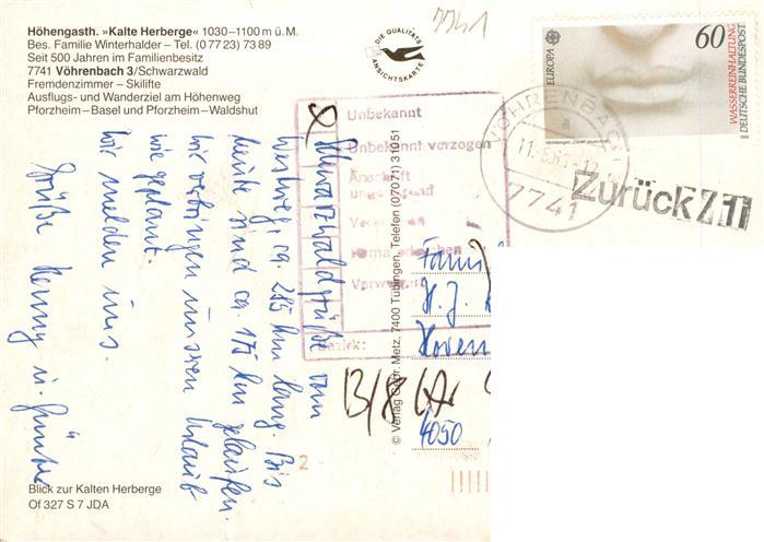 73941809 alte Postkarte Voehrenbach Hoehengasthof Kalte Herberge postalisch gelaufen Erhaltung siehe scans [WerneD78] KatCode: 11110008326068