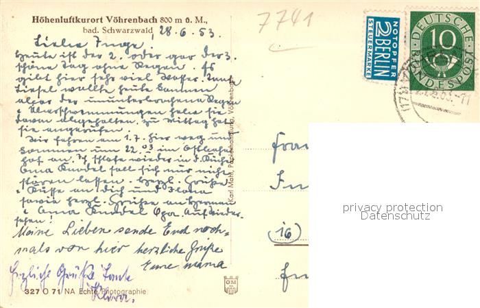33611799 alte Postkarte Voehrenbach Panorama Hoehenluftkurort im Schwarzwald postalisch gelaufen Erhaltung siehe scans [FriedD77] KatCode: 11110008326068