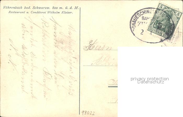 31841432 alte Postkarte Voehrenbach Restaurant-Konditorei Wilhelm Kleiser Bahnpost postalisch gelaufen KatCode: 11110008326068